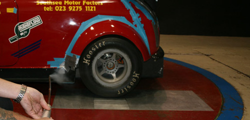| Diffusers help generate low pressure beneath the car, and our twin tunnel adjustable diffuser did produce rear-biased lift reduction with no drag penalty at 10 degrees. But its performance was hampered by the undulations in the minis floor. The gentle flow of smoke emerging from the diffuser showed the flow was lacking energy, pointing at unwanted disruption forward of the diffuser. Integrating it smoothly with a flat floor that connected to the splitter extension under the engine bay would produce much greater benefit. |