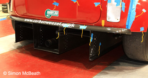 The main section of the spoiler behind the car was mainly redundant, and the section that was producing the lift reduction was the ends that protrude from the side of the car and are in the air flow to the side of the car. We believe that if they are developed further they would produce greater lift reduction to the rear.