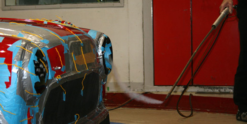 | The splitter was tested at 3 intervals 150mm, 90mm, and 30mm and merged into a flat panel extending back under the engine. The splitter 'taps' the high pressure area ahead of the car and, up to a point, the longer the splitter the greater the downforce. Even the 30mm-long protruding splitter worked wonders. The effect was also to reduce the amount of air flowing under the car and to smooth it out under the engine compartment, but also to speed up the flow to reduce pressure underneath. Front grip was increased by up to 8% at 60mph, which would be very useful in a car which might have the tendency to understeer too much. |